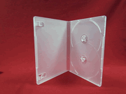 | DOUBLE DVD CASE W/DVD LOGO, CLEAR, 100 PCS PSD37. CASE DIMENSIONS: 7 3/8" X 5 1/4" X 7/16" GREAT QUALITY DOUBLE DVD CASE, CLEAR, WITH DVD LOGO, IDENTICAL IN SIZE TO STANDARD SINGLE DVD CASE. USED BY MAJOR DUPLICATION COMPANIES IN THE US. |