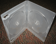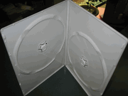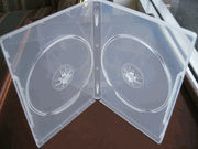 | Double DVD Cases w/(Swing )Flip Tray, Clear PSD44. Double DVD cases w/flip tray, clear, brand new, widely used in commercial DVD packaging. This is the high value double DVD case that has a center flip tray holding first disc, so that it leaves space on the front panel for DVD booklets. The second disc is held on the bottom hub. |