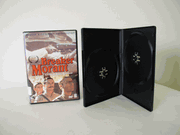 | DOUBLE DVD CASE W/CENTER (FLIP) TRAY, NO LOGO, BLACK, PSD43 100 PCS. CASE DIMENSIONS: 7 3/8" X 5 1/4" X 7/16" THIS HIGH VALUE DOUBLE DVD CASE THAT HAS A CENTER FLIP TRAY HOLDING FIRST DISC, THE SECOND DISC IS HELD ON THE BOTTOM HUB AND HAS LITERATURE CLIPS ON THE LEFT PANEL. PLASTIC OVERLAY 10 3/4" (length) x 7 3/16" (width) FOR DVD COVER. |