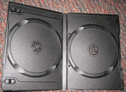 | DOUBLE DVD CASES, BLACK,PSD32 100 PCS/CS. CASE DIMENSIONS: 7 3/8" X 5 1/4" X 7/16". BRAND NEW, PREMIER QUALITY DOUBLE DVD CASES WITHOUT DVD LOGO, USED BY MAJOR MEDIA DUPLICATION & REPLICATION COMPANIES. Plastic overlay size: 10 3/4" (length) x 7 3/16" |