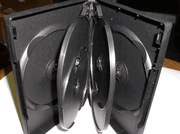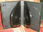 | MULTI-6 DVD CASES, BLACK, 25 PCS,PSD90. CASE DIMENSIONS: 7 7/16" X 5 5/16" X 1" POSITIONS OF SIX DISCS : DISC#1 ON THE FRONT PANEL DISC#2 & #3 ON CENTER FLIP TRAY A DISC #4 & #5 ON CENTER FLIP TRAY B DISC#6 ON BOTTOM PANEL. A TOP QUALITY DVD CASE USED IN DVD PACKAGING; IDEAL FOR YOUR VALUABLE PERSONAL DVD COLLECTION. IT HAS PLASTIC OVERLAY 11 1/4" (Length) x 7 3/16" (width) FOR DVD COVER. |