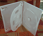 | 14MM SLIM TRIPLE 3 DVD CASE W/FLIP TRAY WHITE ,PSD53. 14MM SLIM TRIPLE DVD CASE W/SLEEVE FOR DVD COVER ARTWORK, SAME SIZE AS STANDARD DVD CASE, WHITE, BOOKLET CLIPS ON LEFT. HIGH VALUE DVD PACKAGING, VERY HARD TO FIND IN THE US MARKET. |